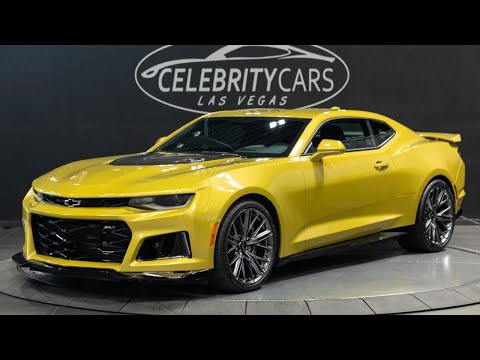 Celebrity Cars Las Vegas is proud to offer this stunning 2024 Chevrolet Camaro ZL1 Coupe, finished in head-turning Nitro Yellow Metallic over a Jet Black interior with Red Accents. This ZL1 is powered by the exhilarating 6.2L Supercharged V8 engine paired with a desirable 6-speed manual transmission, delivering a true enthusiast driving experience.